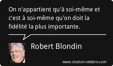 Citation Robert Blondin doit : On n'appartient qu'à soi-même et c'est à soi-même qu'on doit...