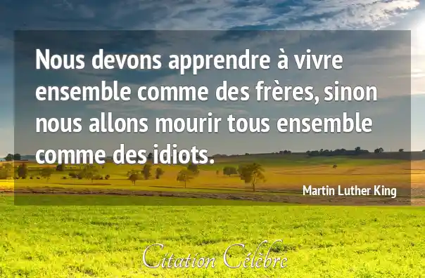 Nous devons apprendre à vivre ensemble comme des frères, sinon nous allons mourir tous ensemble comme des idiots.