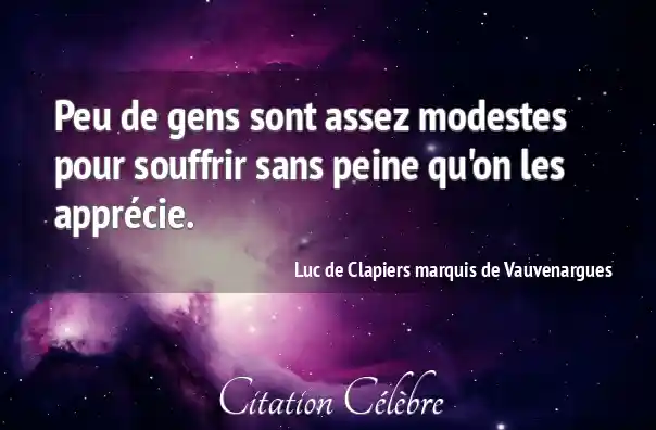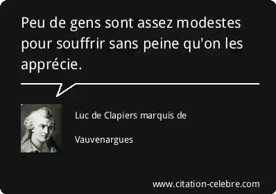Peu de gens sont assez modestes pour souffrir sans peine qu'on les apprécie.