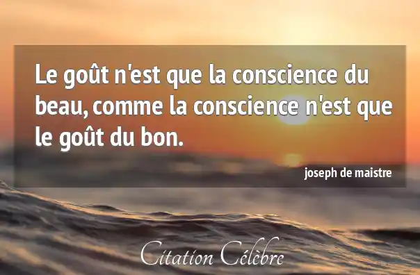 Le goût n'est que la conscience du beau, comme la conscience n'est que le goût du bon.
