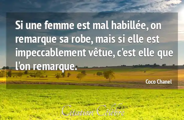 Si une femme est mal habillée, on remarque sa robe, mais si elle est impeccablement vêtue, c'est elle que l'on remarque.