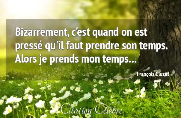 Bizarrement, c'est quand on est pressé qu'il faut prendre son temps. Alors je prends mon temps...
