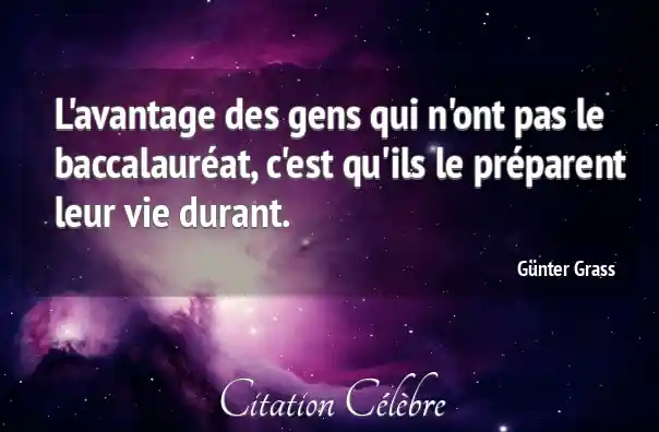 L'avantage des gens qui n'ont pas le baccalauréat, c'est qu'ils le préparent leur vie durant.