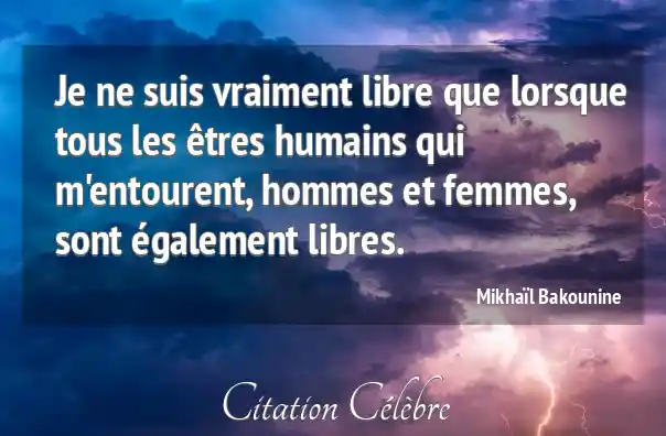 Je ne suis vraiment libre que lorsque tous les êtres humains qui m'entourent, hommes et femmes, sont également libres.