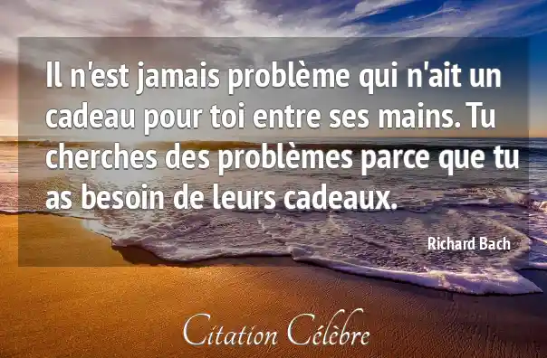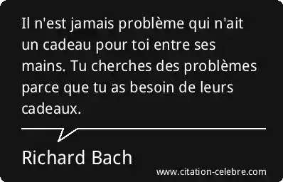 Il n'est jamais problème qui n'ait un cadeau pour toi entre ses mains. Tu cherches des problèmes parce que tu as besoin de leurs cadeaux.