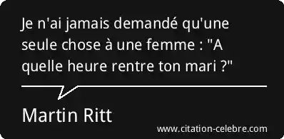 Je n'ai jamais demandé qu'une seule chose à une femme : "A quelle heure rentre ton mari ?"