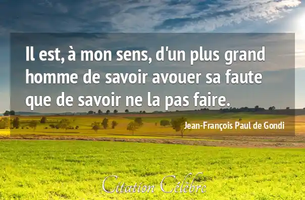 Il est, à mon sens, d'un plus grand homme de savoir avouer sa faute que de savoir ne la pas faire.