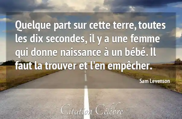 Quelque part sur cette terre, toutes les dix secondes, il y a une femme qui donne naissance à un bébé. Il faut la trouver et l'en empêcher.