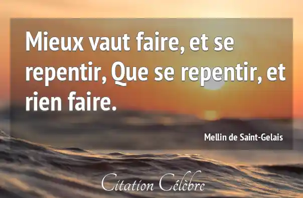 Mieux vaut faire, et se repentir, Que se repentir, et rien faire.
