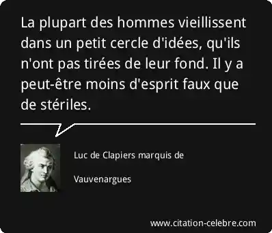 La plupart des hommes vieillissent dans un petit cercle d'idées, qu'ils n'ont pas tirées de leur fond. Il y a peut-être moins d'esprit faux que de stériles.