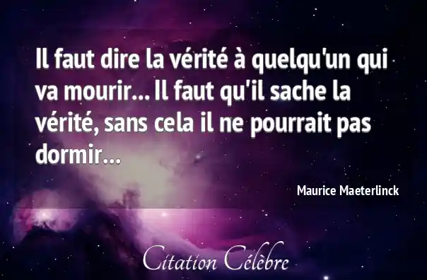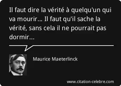 Il faut dire la vérité à quelqu'un qui va mourir... Il faut qu'il sache la vérité, sans cela il ne pourrait pas dormir...