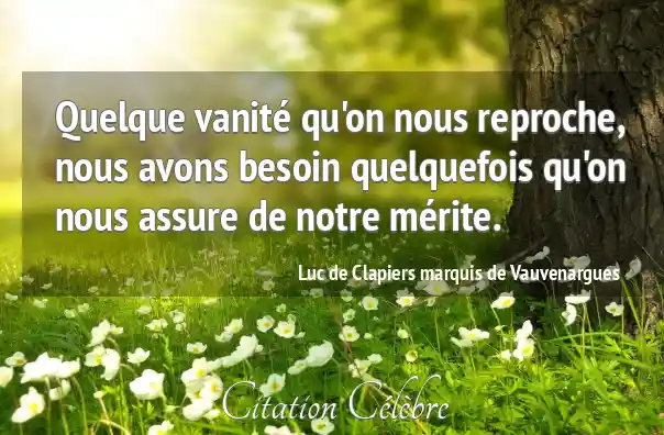 Quelque vanité qu'on nous reproche, nous avons besoin quelquefois qu'on nous assure de notre mérite.