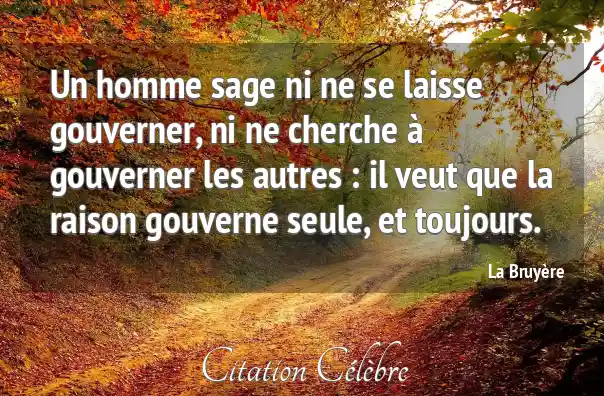 Un homme sage ni ne se laisse gouverner, ni ne cherche à gouverner les autres : il veut que la raison gouverne seule, et toujours.