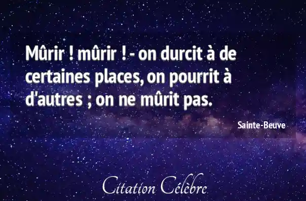 Mûrir ! mûrir ! - on durcit à de certaines places, on pourrit à d'autres ; on ne mûrit pas.