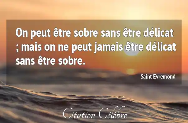On peut être sobre sans être délicat ; mais on ne peut jamais être délicat sans être sobre.