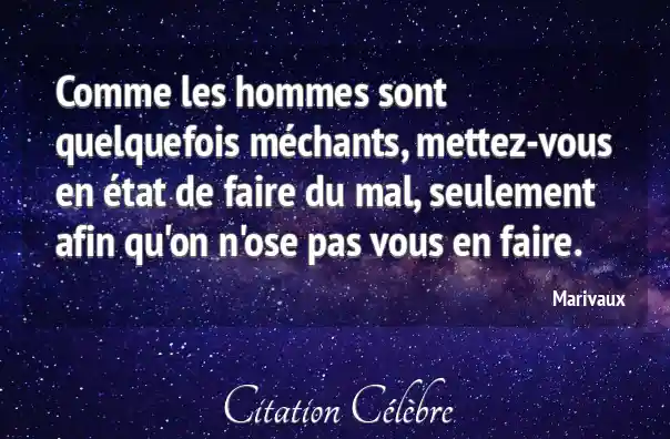 Comme les hommes sont quelquefois méchants, mettez-vous en état de faire du mal, seulement afin qu'on n'ose pas vous en faire.