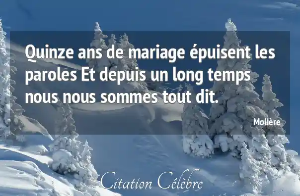 Quinze ans de mariage épuisent les paroles Et depuis un long temps nous nous sommes tout dit.