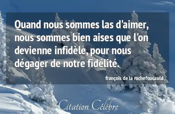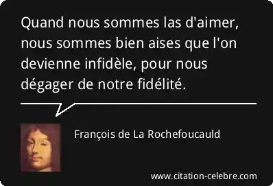 Quand nous sommes las d'aimer, nous sommes bien aises que l'on devienne infidèle, pour nous dégager de notre fidélité.