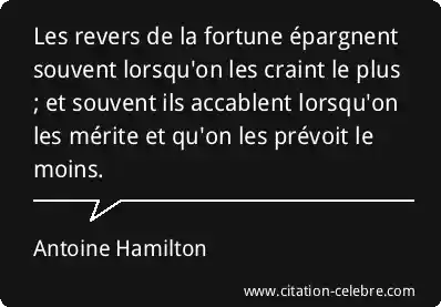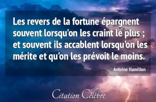 Les revers de la fortune épargnent souvent lorsqu'on les craint le plus ; et souvent ils accablent lorsqu'on les mérite et qu'on les prévoit le moins.