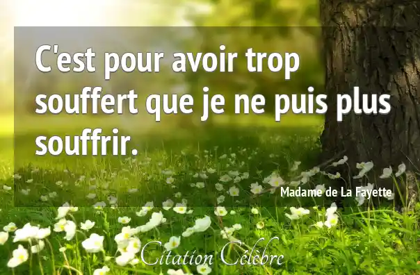 C'est pour avoir trop souffert que je ne puis plus souffrir.