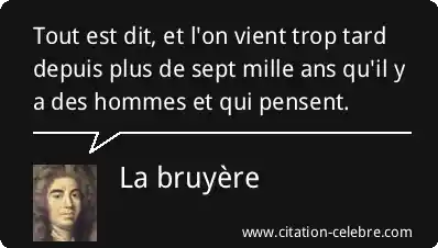 Tout est dit, et l'on vient trop tard depuis plus de sept mille ans qu'il y a des hommes et qui pensent.
