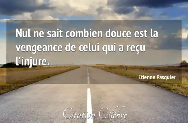 Nul ne sait combien douce est la vengeance de celui qui a reçu l'injure.