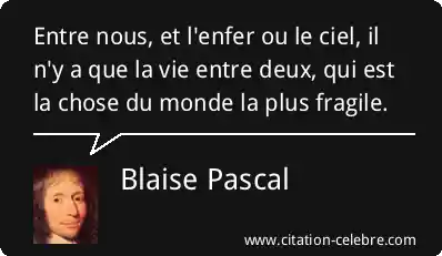 Entre nous, et l'enfer ou le ciel, il n'y a que la vie entre deux, qui est la chose du monde la plus fragile.