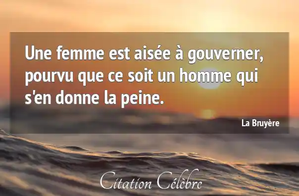 Une femme est aisée à gouverner, pourvu que ce soit un homme qui s'en donne la peine.