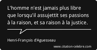 L'homme n'est jamais plus libre que lorsqu'il assujettit ses passions à la raison, et sa raison à la justice.