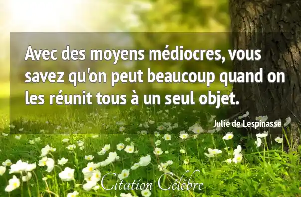 Avec des moyens médiocres, vous savez qu'on peut beaucoup quand on les réunit tous à un seul objet.