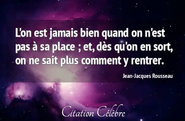 L'on est jamais bien quand on n'est pas à sa place ; et, dès qu'on en sort, on ne sait plus comment y rentrer.