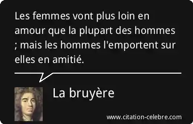 Les femmes vont plus loin en amour que la plupart des hommes ; mais les hommes l'emportent sur elles en amitié.