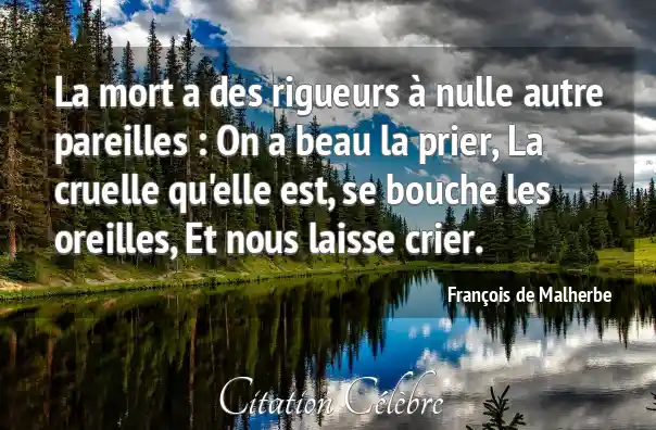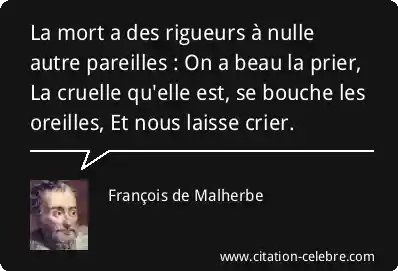 La mort a des rigueurs à nulle autre pareilles : On a beau la prier, La cruelle qu'elle est, se bouche les oreilles, Et nous laisse crier.
