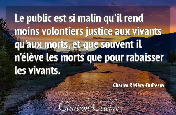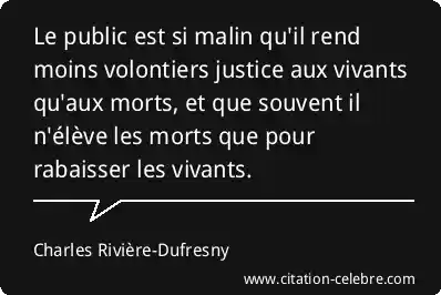 Le public est si malin qu'il rend moins volontiers justice aux vivants qu'aux morts, et que souvent il n'élève les morts que pour rabaisser les vivants.