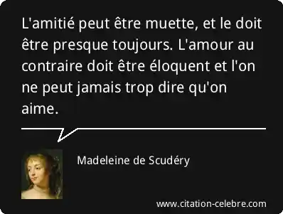 L'amitié peut être muette, et le doit être presque toujours. L'amour au contraire doit être éloquent et l'on ne peut jamais trop dire qu'on aime.