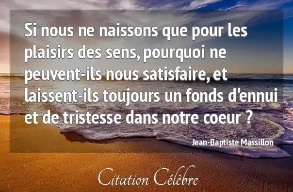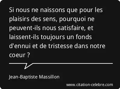 Si nous ne naissons que pour les plaisirs des sens, pourquoi ne peuvent-ils nous satisfaire, et laissent-ils toujours un fonds d'ennui et de tristesse dans notre coeur ?