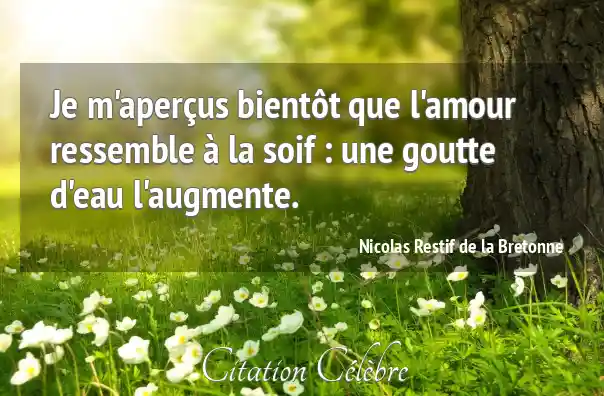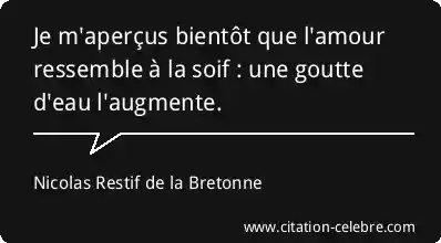 Je m'aperçus bientôt que l'amour ressemble à la soif : une goutte d'eau l'augmente.