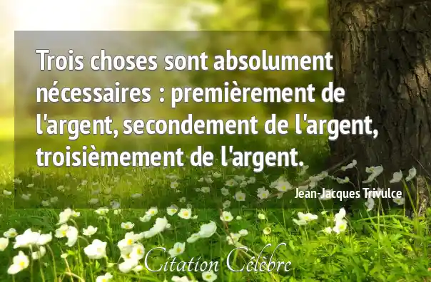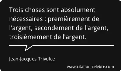 Trois choses sont absolument nécessaires : premièrement de l'argent, secondement de l'argent, troisièmement de l'argent.
