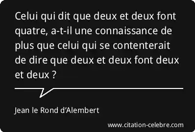 Celui qui dit que deux et deux font quatre, a-t-il une connaissance de plus que celui qui se contenterait de dire que deux et deux font deux et deux ?