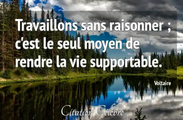 Travaillons sans raisonner ; c'est le seul moyen de rendre la vie supportable.
