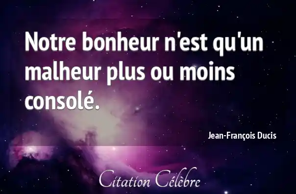 Notre bonheur n'est qu'un malheur plus ou moins consolé.