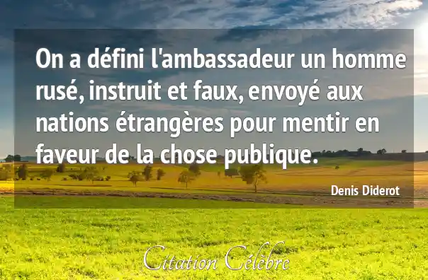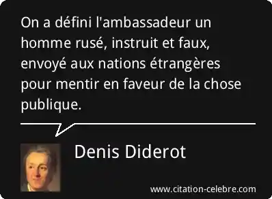 On a défini l'ambassadeur un homme rusé, instruit et faux, envoyé aux nations étrangères pour mentir en faveur de la chose publique.