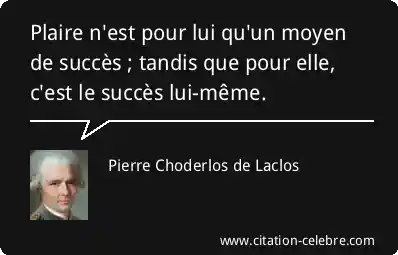 Plaire n'est pour lui qu'un moyen de succès ; tandis que pour elle, c'est le succès lui-même.