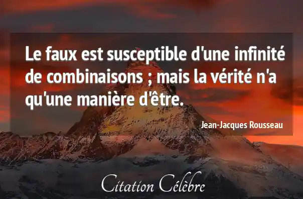 Le faux est susceptible d'une infinité de combinaisons ; mais la vérité n'a qu'une manière d'être.