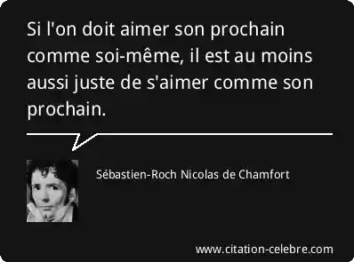 Si l'on doit aimer son prochain comme soi-même, il est au moins aussi juste de s'aimer comme son prochain.