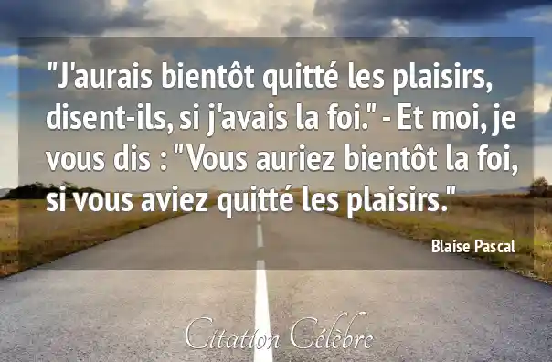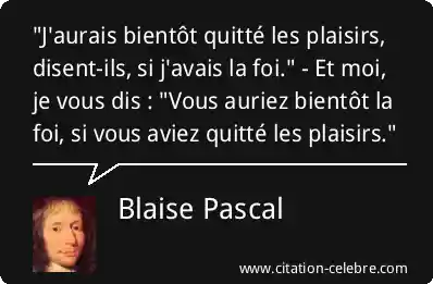 "J'aurais bientôt quitté les plaisirs, disent-ils, si j'avais la foi." - Et moi, je vous dis : "Vous auriez bientôt la foi, si vous aviez quitté les plaisirs."