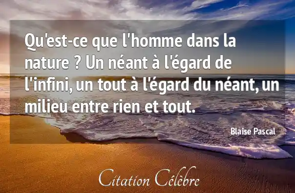 Qu'est-ce que l'homme dans la nature ? Un néant à l'égard de l'infini, un tout à l'égard du néant, un milieu entre rien et tout.