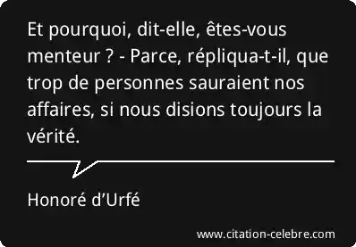 Et pourquoi, dit-elle, êtes-vous menteur ? - Parce, répliqua-t-il, que trop de personnes sauraient nos affaires, si nous disions toujours la vérité.