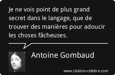 Je ne vois point de plus grand secret dans le langage, que de trouver des manières pour adoucir les choses fâcheuses.