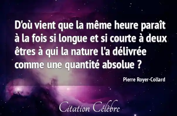D'où vient que la même heure paraît à la fois si longue et si courte à deux êtres à qui la nature l'a délivrée comme une quantité absolue ?